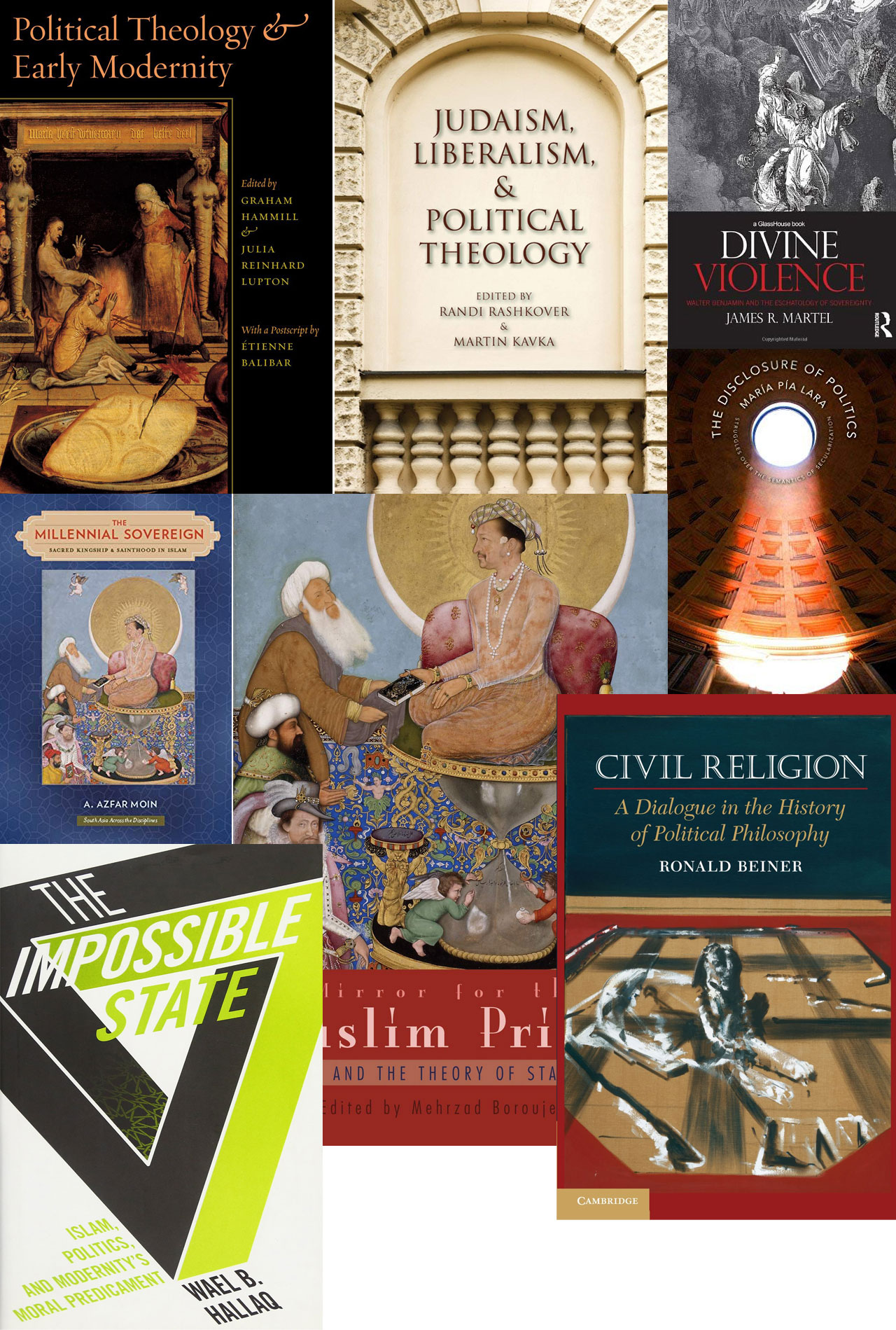 DIVINE VIOLENCE: WALTER BENJAMIN AND THE ESCHATOLOGY OF SOVEREIGNTY. By James R. Martel. New York: Routledge, 2012. Pp. 167. ISBN: 9780415673457 JUDAISM, LIBERALISM AND POLITICAL THEOLOGY. Edited by Randi Rashkover and Martin Kavka. Indiana: Indiana University Press, 2014. Pp. 368. ISBN: 9780253010322 POLITICAL THEOLOGY AND EARLY MODERNITY. Edited by Graham Hamill and Julia Reinhard Lupton. Chicago: University of Chicago Press, 2012. Pp. 352. ISBN: 9780226314976.